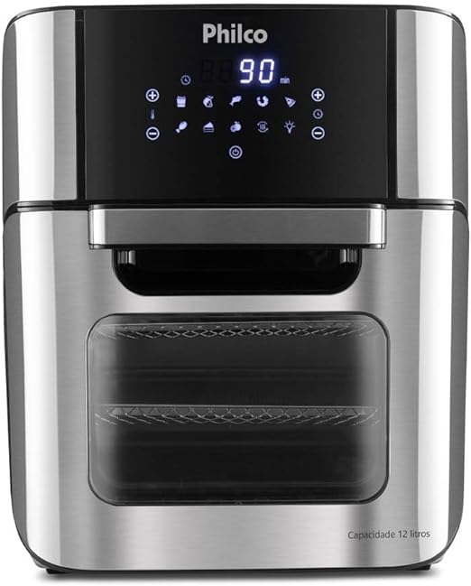 A Air Fryer Philco 1800 12L se destaca por sua capacidade de realizar frituras com pouquíssimo ou nenhum óleo, equipada com um seletor de temperatura ajustável de 80 a 200°C e um timer de 90 minutos, a Air Fryer oferece controle preciso para garantir boas refeições, da forma que desejar.