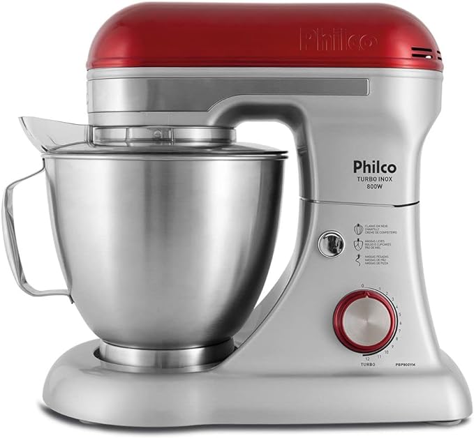 Entre as melhores batedeiras, não podíamos deixar de fora dessa lista a Batedeira Planetária PBP800VM Turbo Inox. Fabricada pela famosa Philco, essa batedeira oferece uma potência impressionante de 800 watts.