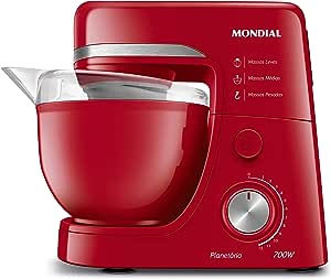 A Batedeira Planetária Mondial 700W BP-03-R tem uma potência máxima de 700W, o que possibilita bater massas de cremes, pães e claras em neve. O design da batedeira é simples e foi desenvolvido para uma alta durabilidade.
