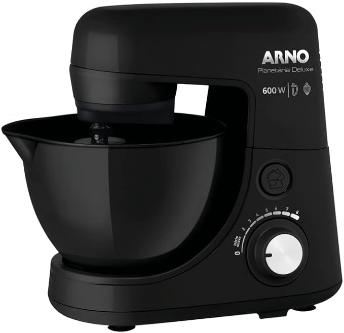 A Batedeira Planetária Arno Nova Deluxe 600W SX34, possui 8 velocidades que são executadas com o mínimo de ruído. A batedeira possui uma função chamada Início Suave que, conforme o nome indica, mistura os ingredientes evitando desperdícios.
